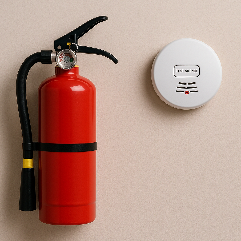 - 소화기: 주방 근처 벽면이나 눈에 띄는 곳에 두되, 습기나 햇빛이 직접 닿지 않는 곳이 좋습니다. 매년 압력계 체크와 사용 가능 여부를 점검하세요.